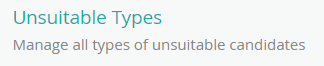 Here you can see all the interview types that are already on your system, to create new ones go to the left-hand side menu and click on ‘Create Unsuitable Type’.