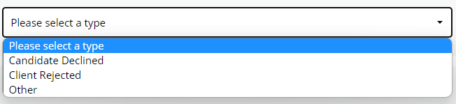 Select whether you want it to sit under ‘Candidate Declined’, ‘Client Rejected’ or ‘Other’.