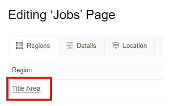 This will take you to the different “Regions” of the page that can be edited. Select the region “Title Area”.
