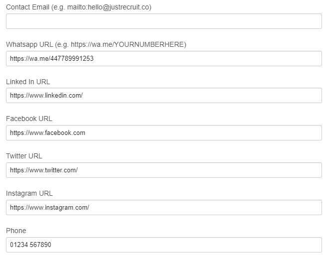 Note: If you do not put a URL into the box, it will not show an icon or link on your website.
