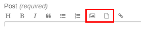 To add a picture or a file to your text, this is done via the below icons and work the same as uploading images to the bottom of your posts. To see more information on this, click here. (11.3.5)